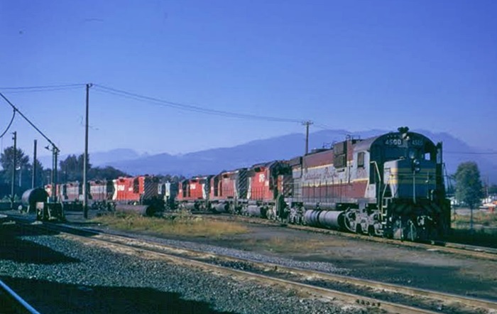 My trip thru Canada in 1973 started at Port Coquitlam, BC looking for Alco's (Montreal's actually), but there were only four on hand and there was a strike in progress on the CP, so I had to watch my P's and Q's as I didn't know how the guys would react to my wandering the engine terminal. There was a Budd car #9103, there and 2-8-0 3716 with a capped stack, and what looked like the beginning of the SD40 invasion....A few guys said when the Alco's first arrived , they ran like champs, but as time went on, they did not do well and were being sent to the east as more SD40's showed up...I was only there for about two hours and then headed for the CN yard and the BCR....Again, real nice weather...Here in California, last night, it poured for seven hours, so Tuesday, I'm going to Roseville as UP has fired up a pair of snow plows, don't know if they are testing them just in case or if they may go on to Donner.....