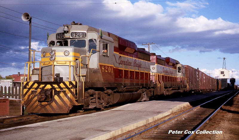 Peter Cox caught CP's brand new pair of GP30's back to back in 1964, In two years they would be renumbered to 5000-5001 and the Script paint scheme modified to included the new numbers in yellow on the cab sides.