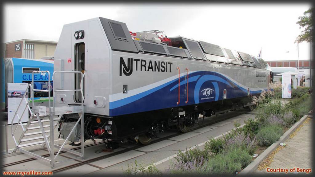 Late in September, CRO received these detail photos of the first production AMT / NJT dual-Mode lALP-45DP. Produced by Bombardier BBD the front end is based on the Traxx series loco which have been in production in Europe for over 10 years and up to now, was available in either all electric or all diesel. They are built in Germany and Poland. It has two Caterpillar engines and is a joint production for NJ Transit and AMT. These can fit inside the Mount-Royal AMT tunnel. AMT’s units will be numbered in the 1350 series. It is Interesting to see both commuter liveries combined on the first built!