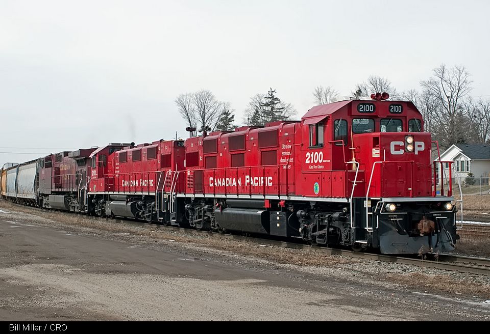 At Galt, ON Bill Miller caught both CP's gensets out on the road leading train 440 (CP 2100-east) on March 15th . CP 2100-2101 are NRE-built