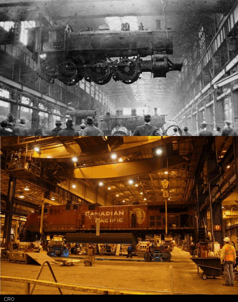 Shop and diesel era overhead crane photo from almost the same view
