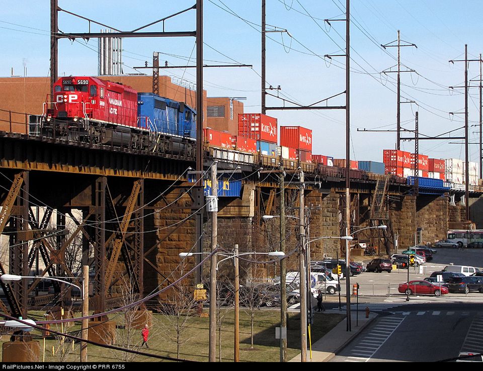 On March 4th in Philadelphia, Pennsylvania, D&H train 158 cruise west along the ex PRR / Conrail high line on the Trenton Sub behind a pair of clean CP / CEFX SD40-2’s.