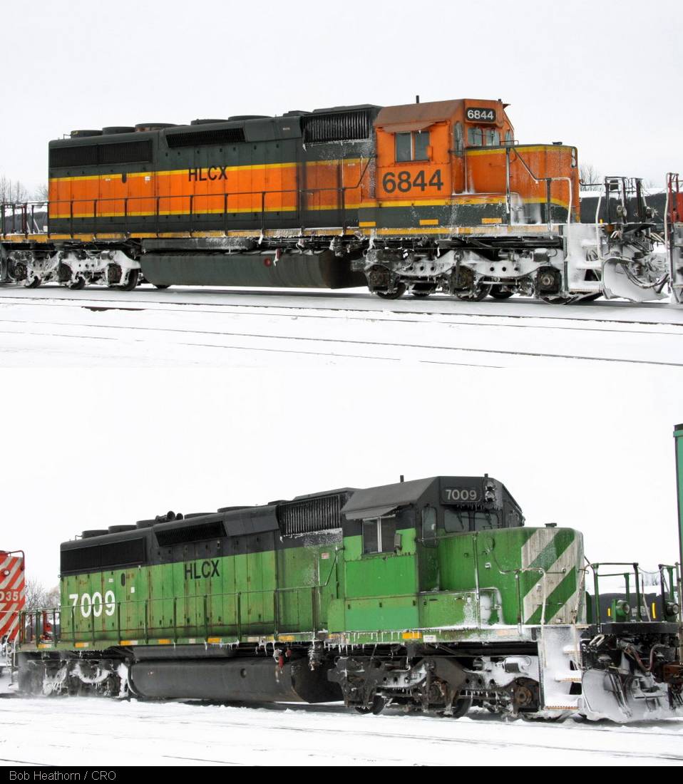 Following another late snowstorm, Bob Heathorn clicked these HELM leased SD40-2’s at Smiths Falls, Ontario March 6th. Still showing there heritage, the westbound Expressway had HLCX
