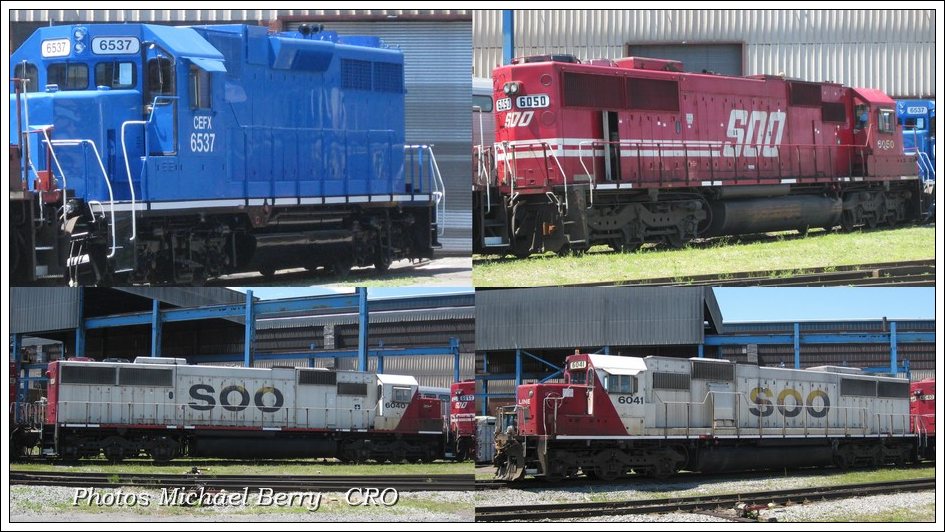August 2011 CADRAIL / RB Recycling – Lachine, QC:Global Railway Industries Limited announced in July the sale of subsidiary CAD Railway Industries, to a consortium of managers as 2290693 Ontario Inc. This company is controlled by Mr. Fausto Levy, Global, and the President and CEO of Cadrail. The value of this transaction is approximately $12.9 Million CDN. Located in Lachine, QC, Cadrail has an ideal location to do business with both a CP and CN interchange track. However the drawback is the facility has no where to expand, and as business is good they are often pressed for storage space. As needed, locomotives for contract repairs can be held in Montreal (CP St-Luc Yard, CN Taschereau Yard, and AMP in Pointe St-Charles), waiting for an opening. In July, CADRAIL were awarded the contract to refurbish 127 GO Transit commuter coaches. Cadrail and Ontario Northland Railway competed fiercely for this contract and in mid-July we learned ONR employees and the City of North Bay are pushing the Ontario Provincial Government to review the awarding of the contract to a Quebec-based company. Michael Berry noted the following locomotives at the CADRAIL facility on July 9th: CEFX GP40-3 6537 in blue with white trim, HLCX SD40-2 7161, SOO SD60’s 6040, 6041, and 6050. CAD shop switcher RS18u 1825 was parked outside the shop and inside was CEFX SD40-2 3117, which has been at CAD for four months.