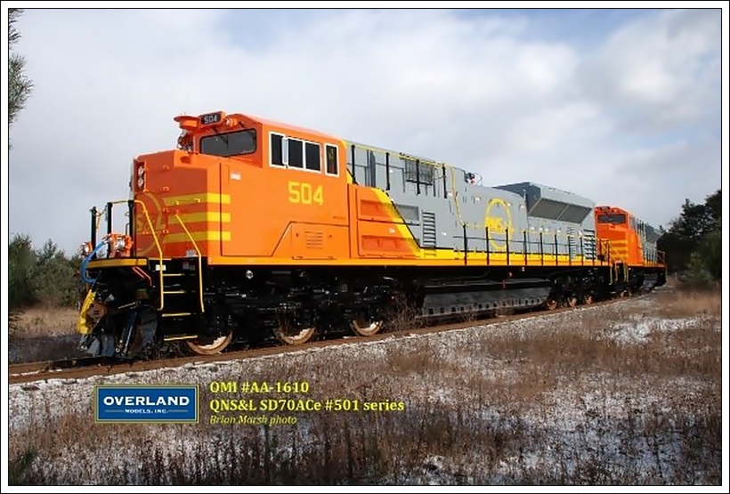 Manny Jacobs is taking orders for an HO detail kit to model Via Rails’ rebuilt F40 PH locomotives. The kit will include a fret of etched stainless steel detail parts (similar to the one previously released for the as-built F40’s) and a resin portion for the new cabinet built on the rear platform. To make a reservation, contact Manny through his website at http://www.execulink.com/~railbus/ Walthers has released three new HO scale ready-to-run passenger cars decorated for a variety of roads including a 73’ Pullman-Standard baggage car available painted for Canadian National. A delivery date of January 2012 has also been announced for several Walthers HO products including Platinum Line Difco dump cars with roadnames including British Columbia Railway and CP Rail. Also due is an HO scale model of an Evans 50’ boxcar which will be available decorated for Canadian National Brian Marsh of Overland Models took this great shot. QNS&L SD70ACe 504 and 505 test on the Y just outside the plant. Overland Models Inc will produce these beautiful locomotives as OMI #AA-1610.