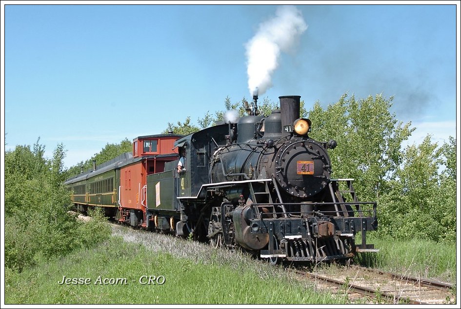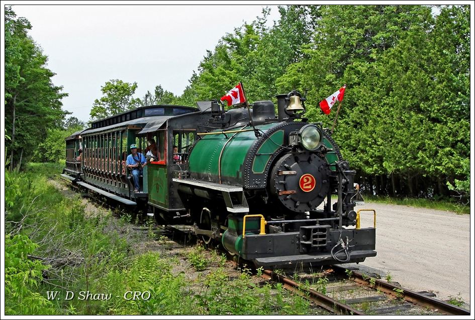 After much hard work and many long hours a team of dedicated volunteers at the Hunstville and Lake of Bays Railway managed to get HLBR 0-4-0T #2 back in steam and hauling passengers on Canada Day as per schedule, missing only the first run of the day due to a balky compressor. Wayne D. Shaw submitted his photo of the Portage Flyer approaching Fairy Lake Station on its second day of operations in three years. The coaches were both built in 1894 as horse-drawn trolleys before being acquired by the Huntsville and Lake of Bays Railway which opened in 1904 as the final link in a steamboat operation linking the North Muskoka Lakes - Vernon, Mary, Fairy, Peninsula and Lake of Bays. The lakes could be navigated by water with locks between Fairy and Mary Lakes and a canal between Fairy and Peninsula, but a high ridge of rocks between Peninsula and Lake of Bays necessitated the building of this short 1 & 1/8th mile line that included a switchback and an average gradient of 3% with one section of a whopping 7%. Before this 21-ton MLW 0-4-0T and it's 17-ton sister (both built in 1926) were obtained the grueling job was handled by 2 little wood-burning Porters that could barely make the grades, and it wasn't unheard of for passengers to have to detrain and help push the train over the hill! Wayne Shaw also did a 4 hour stint as fireman on her and joked, “No air conditioning except for the warm 10MPH-breeze while in motion. Thankfully the locomotive was converted from coal to oil-burning, so it’s not too bad a job at all!” This may be the only operating steam locomotive in Ontario at this point in time.