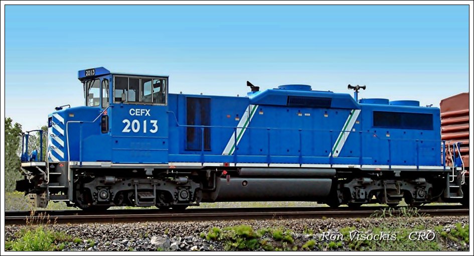 At CN Belleville, Ontario July 19th, Ron Visockis caught CEFX GP20D 2013 that was soon to head eastbound with sibling 2016 via CN to Montreal. Both are destined for interchange from QNSL to the Arnaud Railway at Sept Iles, QC to join the four others already there.