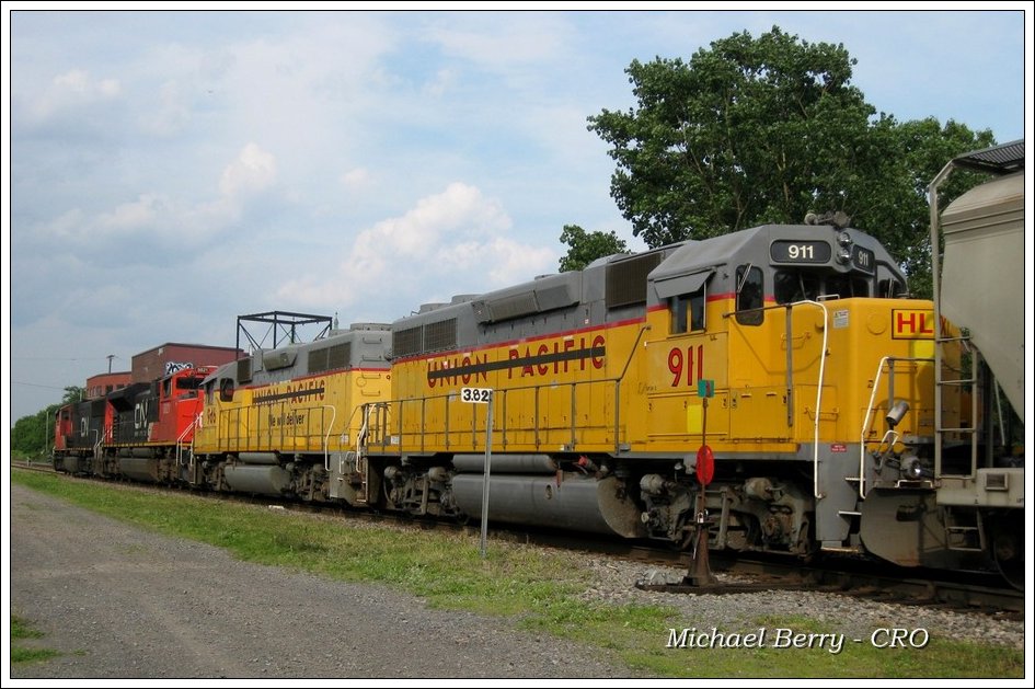 A new CSX intermodal bid is now seeking federal approval. (See link) http://www.canadianrailwayobservations.com/2011/aug11/csxfrankjolin.pdf EASTERN: On July 5th, Michael Berry caught HLCX GP38-3 906 and 911 (ex-Union Pacific) trailing CN 5659 and 8821 as the CN eastbound had stopped for a crew change at St-Henri, Quebec on the Montreal Sub. These units are destined for interchange to New Brunswick Southern (NBSR) for lease to the NBR for service on Maine Northern Railway Company. HLCX 913 and 917 are still to come. As of July 11th, HLCX GP38-3 906 and 911 had arrived on the New Brunswick Southern Railway, and both are now in service.