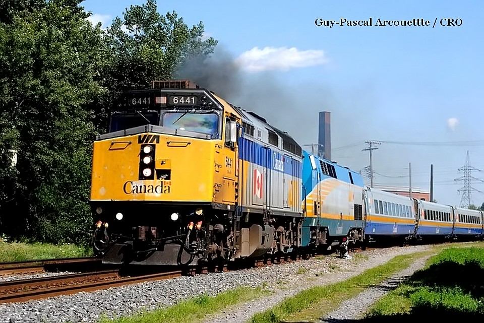 A rare VIA F40PH-2 / P42DC combo lead a Toronto-bound train on August 2010 on the CN Montreal Sub through St-Henri, QC. (Guy-Pascal Arcouette).
