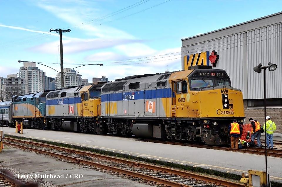 VIA LRC locomotive 6919, which was sold to RB Recycling in Montreal, was cut up for scrap beginning January 15th. The locomotive was previously stripped of its prime mover and generator in Toronto for RB Recycling, and the Toronto Railway Historical Association (TRHA) was allowed to remove any other usable parts (sans traction motors) to help in the effort to preserve recently acquired 6917. As neither CN, or CP would ship the LRC to Montreal due to a defective brake system, the unit was cut up at VIA's Toronto Maintenance Centre by a contractor's demolition excavator. Of the other remaining VIA LRC units: 6907 (stored in Montreal) and 6914 (stored in Toronto), have now both been shipped to CADRAIL/RB Recycling for scrap. The other (VIA LRC 6917), was acquired for preservation by the TRHA, who still need help acquiring funds in order to move the unit. More details about the TRHA’s ongoing efforts to move and restore 6917 can be found on their website: http://www.trha.ca/LRC/ On January 16th at the VIA Rail's Vancouver Maintenance Centre Terry Muirhead caught VIA F40PH-2 6424 switching some cars about, including VIA 8342 “Wolfe Manor”. This car was then placed on that night’s #2 out of Vancouver with lead units 6424 and 6444. Unit 6424 is one of the only F40s to have received the modern VIA Rail Canada logo in place of the typical large “VIA” icon on the sides of the locomotive. Only 6424 and 6446 have received the modern logo while still in the pre-rebuild yellow/grey/blue scheme. 6424 has an interesting history with VIA Rail, in terms of advertising paint schemes. In 2004, 6424 was one of six locomotives outfitted with decals promoting the new film “Spiderman 2”, although it did not last long in that scheme. In 2005, the unit was stripped of its Spiderman decals and repainted in all red with Budweiser “Superbowl Tailgate Train” graphics as part of a promotion for Superbowl XL. The locomotive was then repainted back into its VIA livery in 2006, and received the updated VIA Rail Canada logo on its flanks. In mid 2010, the unit was also outfitted with a third headlight, a modification now being applied even to units that have not yet been rebuilt. West Coast express Cab Car 107 sits in the background. VIA Rail has the contract for cleaning and servicing of the West Coast Express for Translink. VIA FP9Au 6300 is seen outside VMC the same day. She had been the VMC Switcher, but due to mechanical issues VIA 6300 has not turned a wheel in over a year.