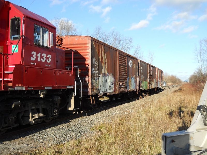 The Niagara Railway Museum Inc. is very pleased to report that our 3 CP Rail boxcars are one step closer to the Museum site, the ex-Canadian National diesel shop in Fort Erie after a successful move out of Niagara Falls to a temporary storage location in Stevensville. The cars were secured at 1630 Tuesday November 19th, after a very long day for the CP Rail crew that moved them, and our members who were there to make sure everything went well.