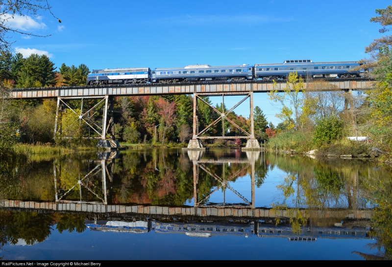 The only EMD-built FL9 currently operating in Canada! Michael Berry caught the Orford Express crossing over the famous ex-CP Eastman Trestle on September 29th, ith FLNX FL9 484 pushing the consist.