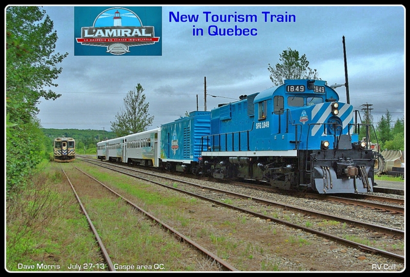 CRO thanks Bernard Babin, Dave Morris and Ron Visockis for this great shot of the new Tourism Train in Quebec using an ex CPR RS-18, the bleu L’ AMIRAL which used ex-GO commuter cars. The train operates in the Gaspe area.