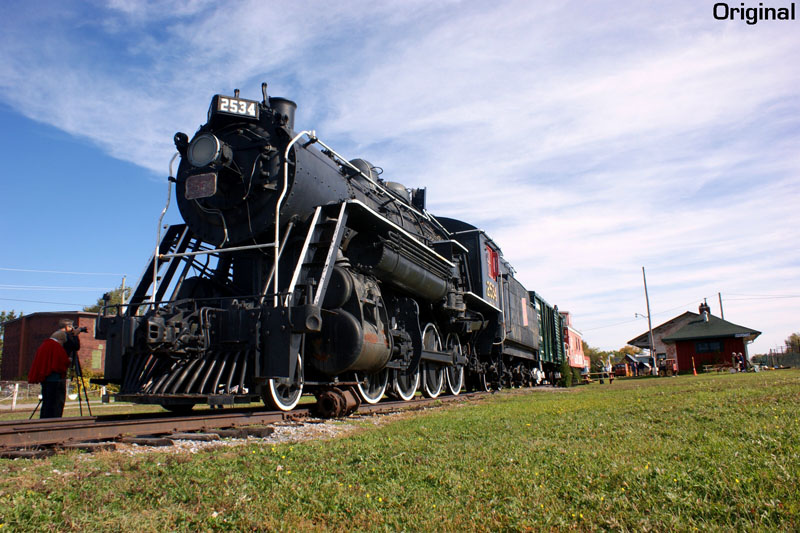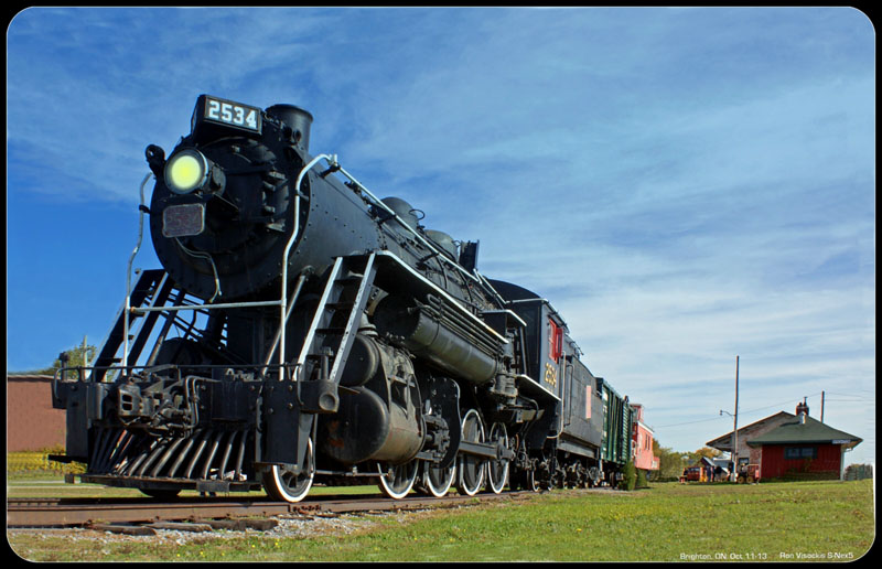 On October 12th, Ron Visockis was a photo field trip at The Brighton, Ontario Brighton Memory Jct. Museum. Ron photographed CNR 2534 and decided to photoshop the image for fun. Compare the images What do you think?