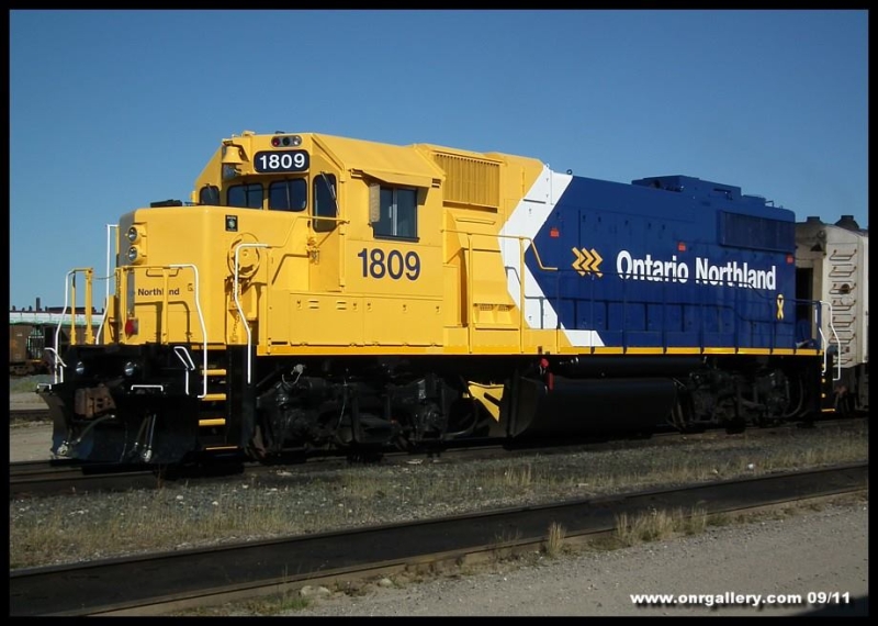 It's hard to believe that it's been over two years since the public was informally introduced to Ontario Northland's new "arrow" paint scheme. Mike Robin shot ONR GP38-2 1809 on September 17th, 2011, at Cochrane, ON. ONR 1809 was the first locomotive to receive the 'futuristic' paint scheme, is prepped to lead the following day's southbound 422/222 Northlander.