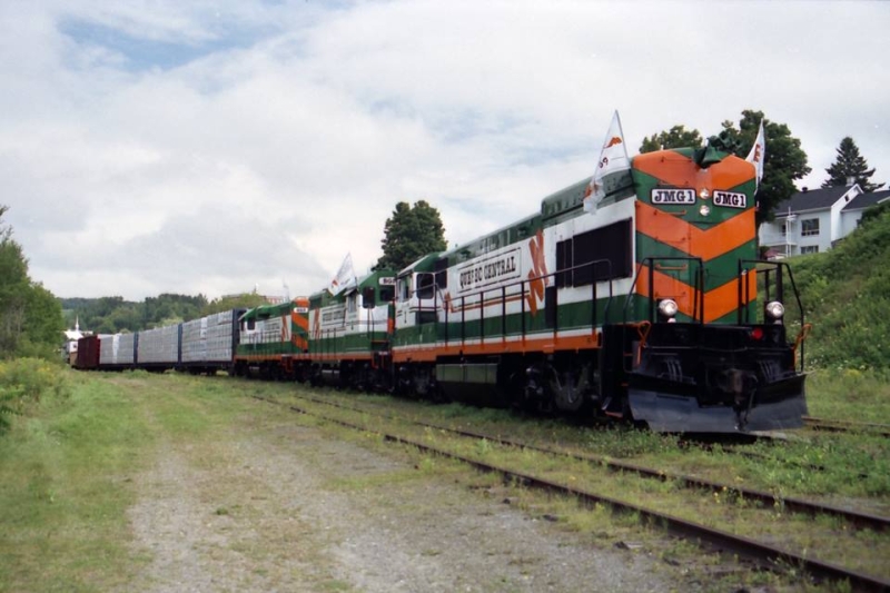 John Young photographed these colourful Québec Central locomotives at Vallée Jonction, QC back in 2001.