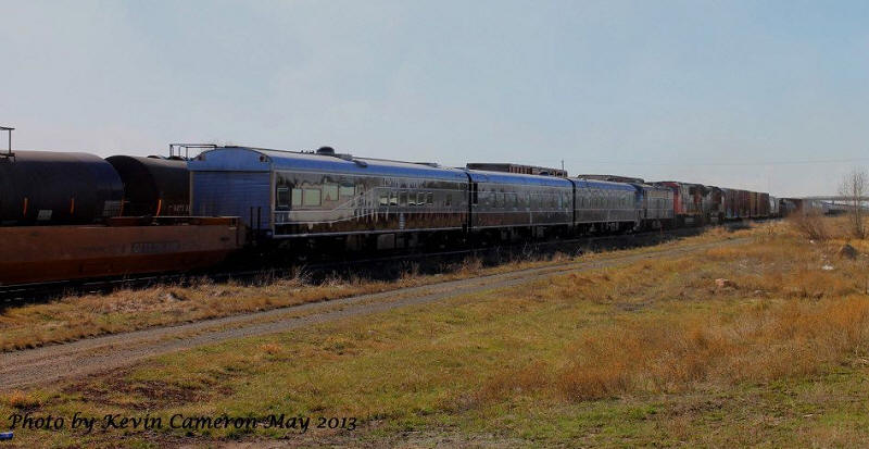 In late April, former Wisconsin Central heavy weight rear platform observation car “Superior” had been relettered to CP 3 at the CN Woodcrest Shop.  It is still wearing the WC maroon and yellow paint scheme, and is the third business car CP has purchased in two months, In March, the Canadian National Railway sold two cars from their executive fleet to the Canadian Pacific Railway which were renumbered CP 2 and CP 1.   Track inspection theater car CN 1060 “Sanford Fleming” ( “CP2”),  and CN heavyweight platform observation car 1058 (“CP1”)  were then moved  to Quality Rail in East St. Louis, IL for repaint  The former Wisconsin Central observation, car is seen lettered “CP 3” at the Woodcrest shop April 27th