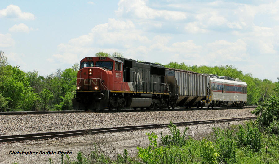 All 43 second-hand EMD SD60 (3,800 hp) locomotives that CN acquired from GMTX last year, have been repainted, upgraded to CN specifications, and are in service.   As well, the first units from the 2nd group of 47 EMDX Oakway’s are being painted at Centralia, IL with several in service,  A handful in Oakway colours that were CN patched and pressed into service, were shutdown in April, and sent to the Centralia Shop for painting.
