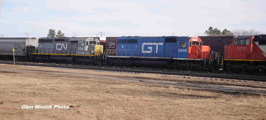 On May 10th, Glen Mounk bagged two GTW units SD40-2 5936 and SD40-3 5943 arriving in Canada at Fort Francis, ON.