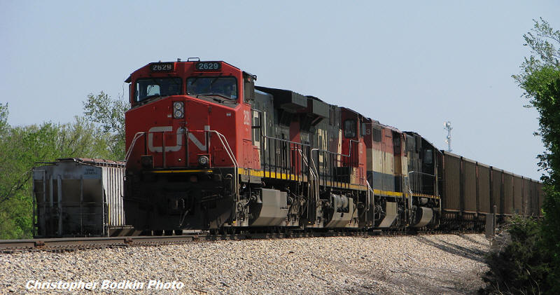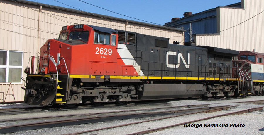 On May 14th, George Redmond caught CN C40-8W 2629 and BCOL C40-8Mu 4626 between assignments at the CN engine facility at Centralia, IL.