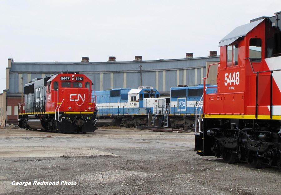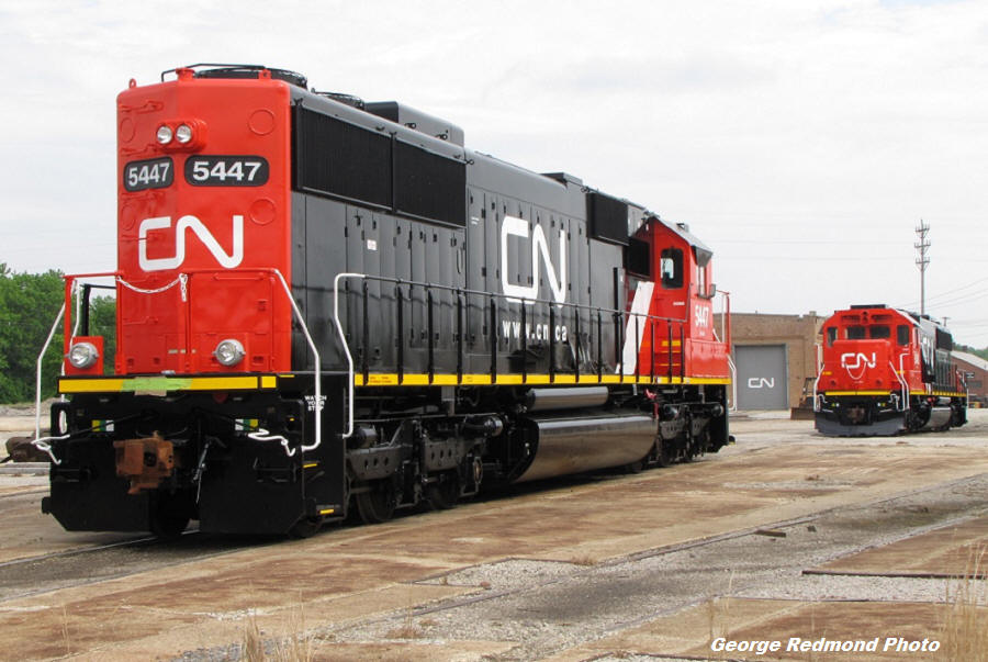 On May 17th, CN 5448 and 5447 were in new paint at the CN engine facility at Centralia, IL.