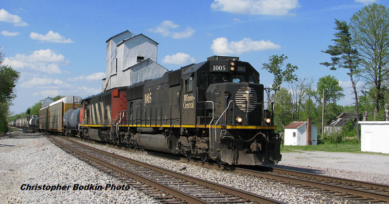 Christopher Bodkin snagged CN C44-9W 2629, ES44DC 2225, BCOL C40-8M #4623, and IC SD70 1009 on a NB coal empty stopped in the hole at Carbondale, IL for a meet with A432 on April 30th.   Moments later, A432 blasts through with IC SD70 1005 and CN C40-8M 2407.