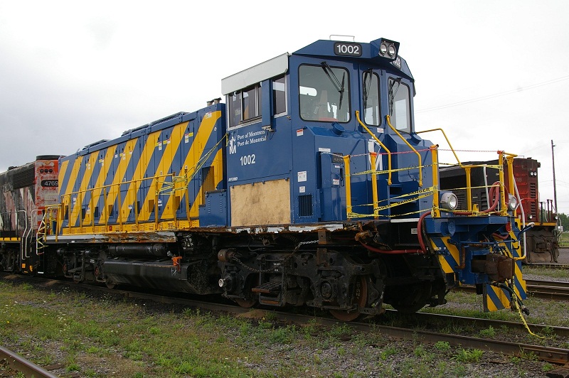 Damaged POM RP20BD 1002 was snapped by Eric Aucoin in Taschereau Yard August 30thfollowing a collision at the Port of Montreal, and likely headed back to RELCO in Albia, IA for repairs