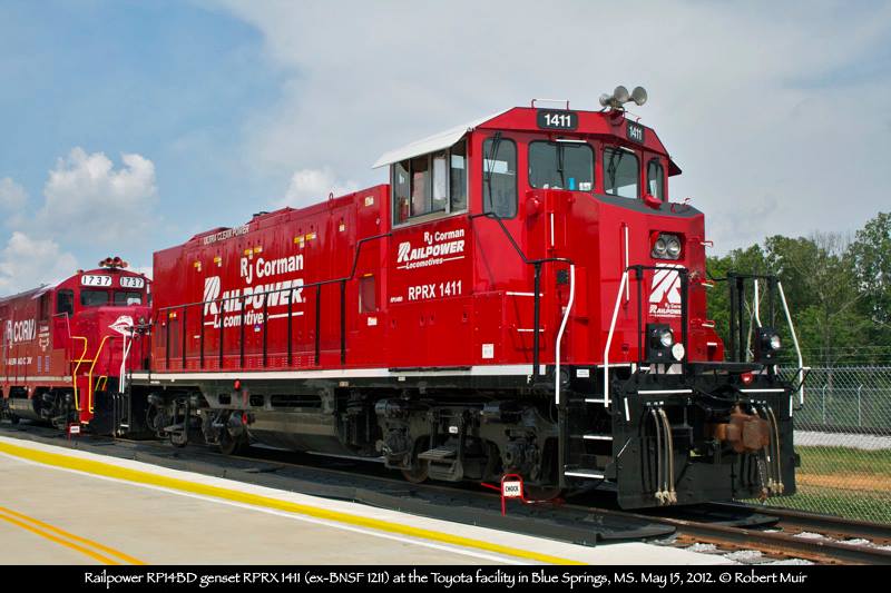 Post conversion, with a coat of paint added, RPRX 1411 is now the contract switcher for RJ Corman's Toyota plant contract in Mississippi