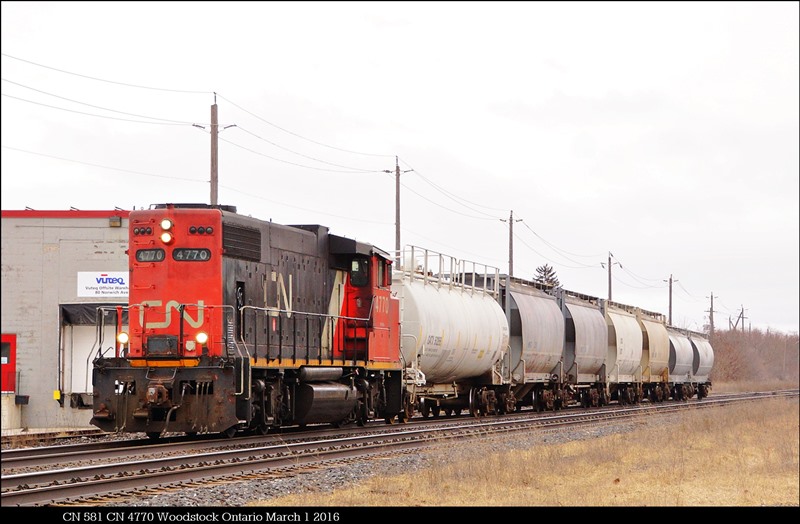 A poor economy and ever changing traffic levels affecting the amount of activated Motive Power, CN has again increased the number of stored units at their shops in Illinois, Alberta, Ontario, and Tennessee. CN has approximately 75 locomotives in storage at Centralia. IL, the majority of which are SD60F, SD60, SD40-2W's and Dash 8-40C, and a few IC SD70 models. Basically it comes down to a poor economy, loosing major contracts to haul goods, or the end of seasonal traffic such as Grain loads. For these major reasons all Class one railroads must from time-to time store large numbers of locomotives. CN use the following criteria to choose what locomotive models get stored: Age of the Locomotive, Reliability, and its Performance. The model series to be stored gets drained of fluids, the roof stack is covered, to prevent water corrosion, the Batteries are disconnected and sometimes removed, and depending on the storage location, the cab may get locked to prevent vandalism . As well, with traffic down, in January2016, CN had approximately 600 people laid off system wide.