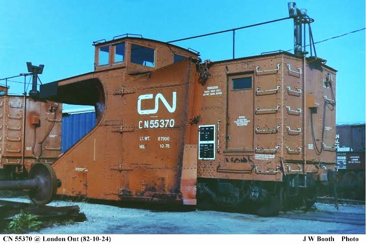 Jim Booth photographed CN plow 55370 and 55397 in London, Ontario on October 24th, 1982.