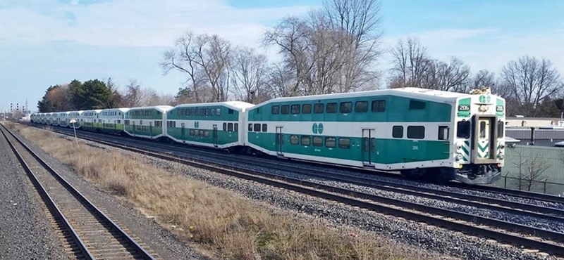 Westbound GO train is braking for the final stop at Aldershot after beginning its journey in Oshawa Ont, on Jan 30/16