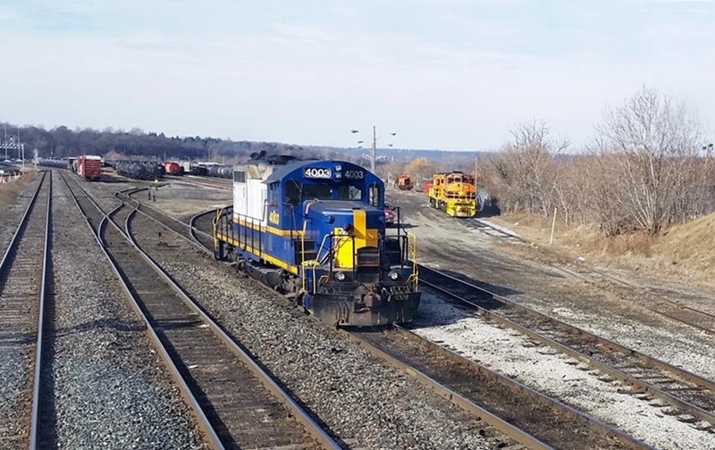 From the CN cab, Railink GP-9 4003 was working hard in the Hamilton Yard, as her siblings were resting on the shop tracks on Jan 30/16.