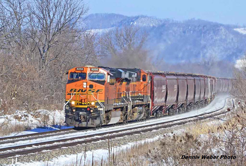 BNSF G-FINPGA had BNSF 6256 and 1092, on February 3rd, when Dennis caught the train at Stoddard, WI.