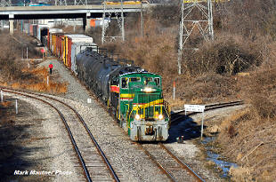 Mark also submitted these shots taken February 18th of Progressive Rail's Central Midland Railway “turn” job to TRRA. CMR has recently picked up leased GMTX GP38 2001 ( ex-IAIS ) to supplement the three leased EMD switchers on the property. CMR operates from a connection with TRRA at Overland, MO west to Union, MO a distance of approx 50-miles over ex Rock Island trackage.