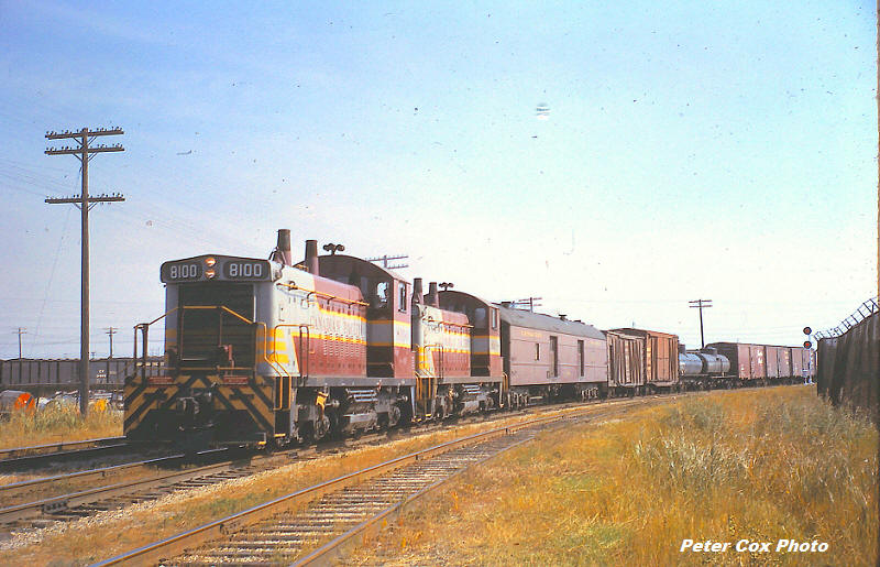 With a mixed consist on September 16th, 1964, CP SW1200RS 8100 and sibling are preparing to depart Winnipeg, MB destined for a secondary route to the south. These units had the light enclosures only on the leading end. The trailing end had the type of headlight/number lights fixture usually applied to yard engines. Also, the exhaust stacks appear to be higher than those applied to similar CN units. Earlier this year, CP retired and sold their last operating survivors of this series, following over a half century of reliable service.